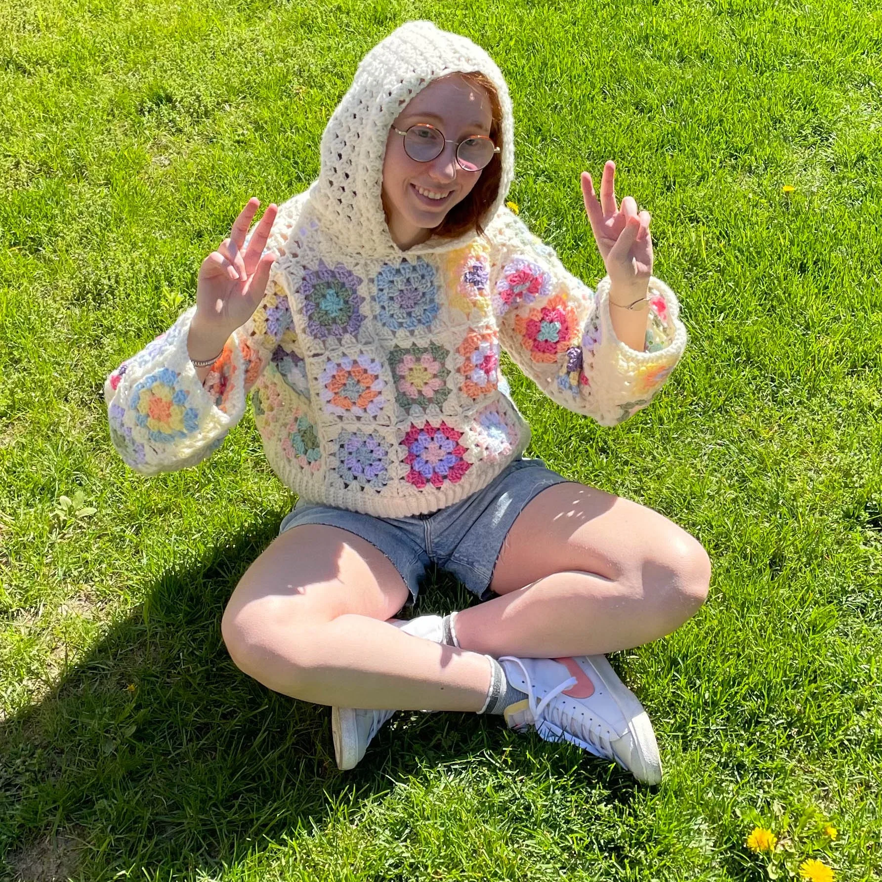 After that I hadn’t really picked up a hook in a while until lockdown boredom really set in, and I decided to challenge myself and crochet clothes in May of 2020. After a couple of crop tops and watching a lot of videos I thought I’d try to make a cardigan without a pattern. After many failed sleeves I finally finished my sweater!