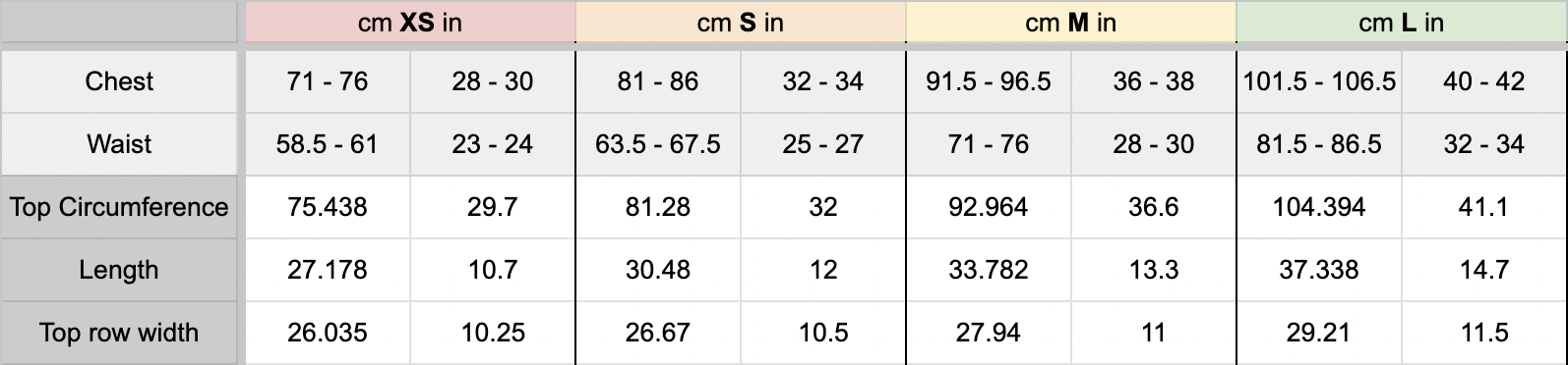 The tank has about +1/-1 inch of negative ease, which means it will fit almost exactly to your bust measurement. If you would like a tighter or looser fit, go up or down a size. If you would like to go in between sizes, make sure you alter the stitch count by 8 stitches exactly.